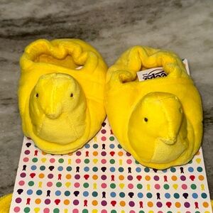 For Sale is a Brand New in Package Peeps Chick Baby Set and Matching Teether in Yellow. Included in the matched set is a Chick / Duck hat with embroidered eyes & plush 3d beak, a bandana style bib with adjustable hook & loop fastener - embroidered with the words LIL' PEEP and a pink chick peep, a pair of chick slippers with elastic ankles and embroidered eyes and a matching yellow rubber bunny peeps ring teether set. All items are fashioned after the Easter Peeps chick and bunny marshmallow treats. Everything is on the original cards. Comes from a Smoke Free and Pet Free Home.