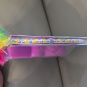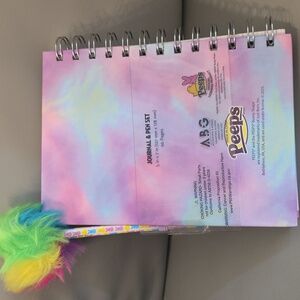 Brand new cute purple peep bunny on a pastel rainbow background. the peep is squishy. Has a matching multicolored bunny pen with a rainbow pom on the end. comes from a pet and smoke free home.