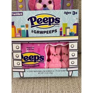 Peeps plush GRW pink flower, tie-dye bunny with candy