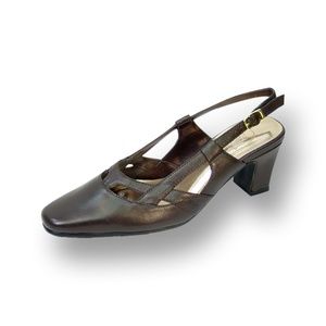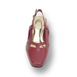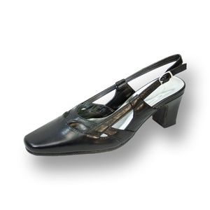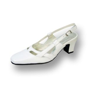 Look super chic on the town in the PEERAGE Kate women extra wide width strap vamp design slingback for any occasion. This ladies 2.5" mid-heel slingback features a closed toe front and all leather body creating a classic style that is timeless.