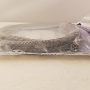 1/4 inch Compression inlet x 1/4 inch Compression outlet six foot flexible braided polymer water connector.