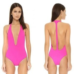 PEIXOTO Flamingo Plunging One- Piece T-Back Swimsuit in Magenta size XS