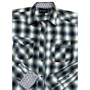 PELHAM PEARL SNAP FLIP CUFFS WESTERN SHIRT SZ XLT BLUE PLAID LONG SLV COWBOY MENS