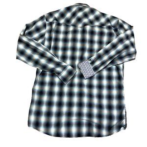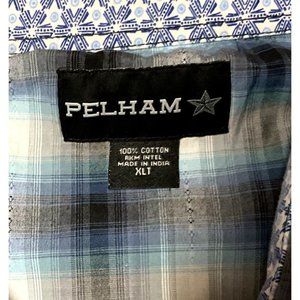 THIS IS A PEARL SNAP FLIP CUFFS BLUE GRAY WHITE PLAID BLACK SHIRT IN XLT LONG SLEEVE BY PELHAM FOR MEN IN A 100% COTTON