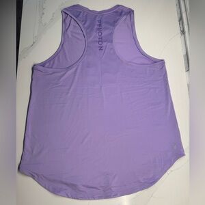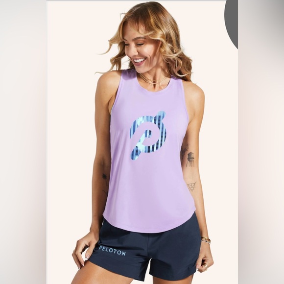 Chic lavender tank with striking blue Peloton logo. Ideal for active days. Size large fits like 10/12. EUC no flaws.