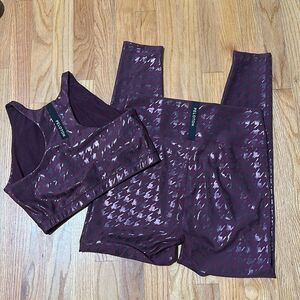 PELOTON Show Up Maroon purple metallic set LeggingsXL Sports Bra L Yoo Chung Dsg