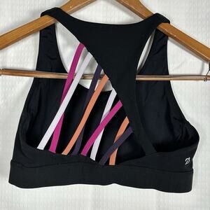 PELOTON Women’s Size M Black/Multicolored Padded Sports Bra Workout Cycling Fit