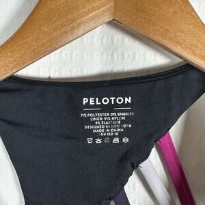 PELOTON Women’s Size M Black/Multicolored Padded Sports Bra Workout Cycling Fit. Condition is Pre-owned - Good. Shipped with USPS Ground Advantage.