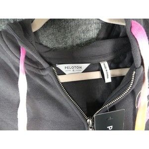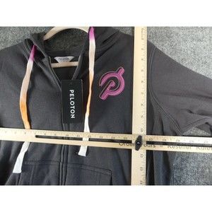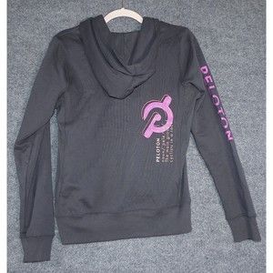 PELOTON Womens Small Sweatshirt Hoodie Dark Gray Full Zip Graphic Print Hooded