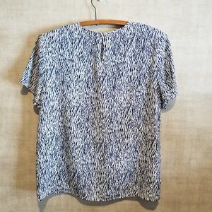 PENBROOK LANE WOMEN'S SHORT SLEEVE CAREER BLOUSE USED SIZE MEDIUM 12-14 SILKY BLUE & WHITE B-25