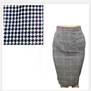 PENCIL SKIRT VINTAGE BLACK WHITE HOUNDSTOOTH MIDI KNEE