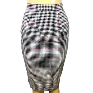 Vintage Pencil Houndstooth pink white and black skirt. Straight knee length business or casual . Flat pockets. Light pleated waist. Black zipper button closure. Excellent condition.