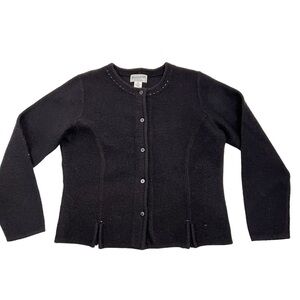 PENDLETON 100% Virgin Wool Black Beaded Cardigan Size Medium