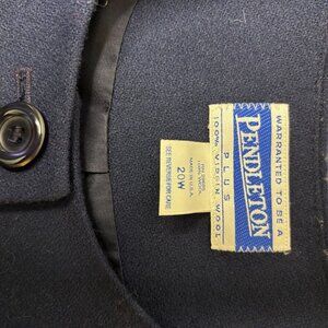 PENDLETON 100% Virgin Wool Lined Blazer Navy 20W Plus Round Neck Buttons Vintage