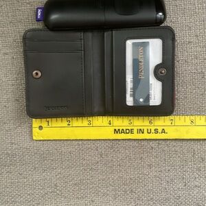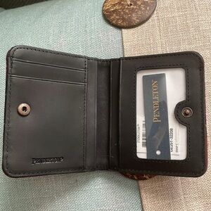 Wallet/Card Holder, ID Window, Red, Black, Yellow Plaid with Outer Zipper Compartment.