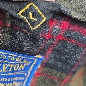 This vintage Pendleton robe is a must-have for any fashion-forward man. Made from 100% virgin wool, this robe is incredibly soft and comfortable to wear. The multicolor design is eye-catching and unique, making it a standout piece in any wardrobe.With its regular size fit and classic robe style, this Pendleton robe is perfect for any occasion. Whether you're lounging at home or out and about, this robe is sure to turn heads. Don't miss out on the opportunity to add this stunning piece to your collection.