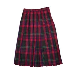 PENDLETON $269 Pink Green Black Tartan Plaid Pleated Wool Midi Skirt Size 12