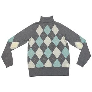 PENDLETON ARGYLE MERINO WOOL GRAY AQUA TURTLENECK SWEATER