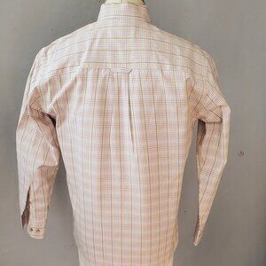 Set of three Pendleton dress shirts. Superior quality wrinkle free cotton button downs with plain front, patch chest pockets, 2 in grid patterns, one in micro gingham. Lot of 3 included.