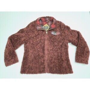 PENDLETON Fleece Sherpa Jacket Burgundy Full Zip Pocket Women's Size Medium