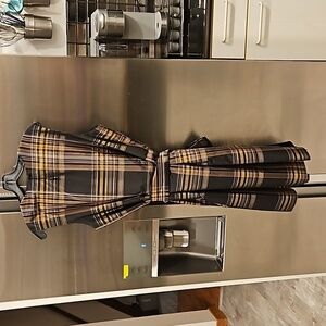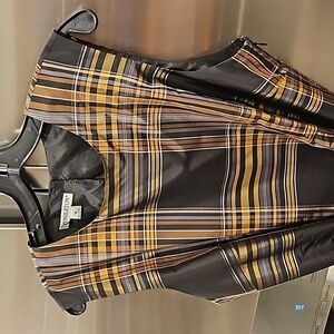 💕PENDLETON💕 Holiday Dress 100% Tafetta Silk ~ Black & Gold Tartan Plaid 18