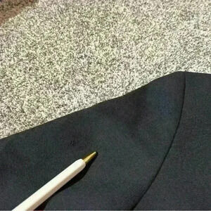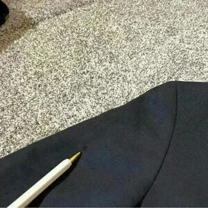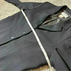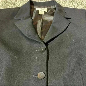 Note- some staining/ spots on the blazer- pictures for reference. Spots appear on one arm, and across the front of the blazer. Did not try to remove due to dry clean only tag. Additionally 3 small holes on the coat. Two on the right sleeve and one near the seam of the shoulder on the left sleeve.