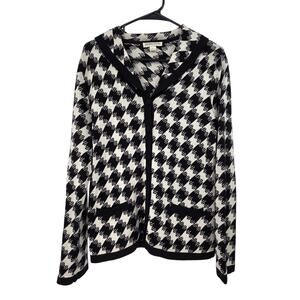 PENDLETON LARGE MERINO WOOL HOUNDSTOOTH BUTTON UP LONG SLEEVE CARDIGAN