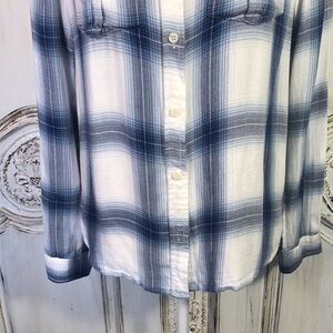 PENDLETON Lightweight Blue and White Plaid Long Sleeve Button Down Size Small