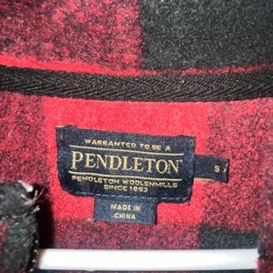 PENDLETON Mens Fleece Pullover Sweater Red Plaid 1/4 Zip Long Sleeve