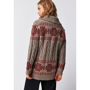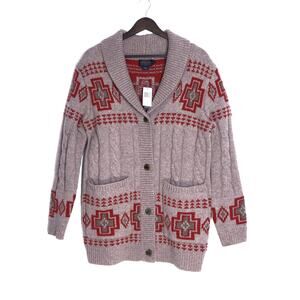 PENDLETON NWT Jace Cable Knit Cardigan Sweater Taupe Lambswool Oversized Women's XS