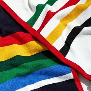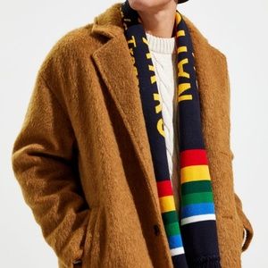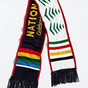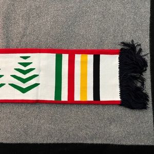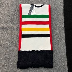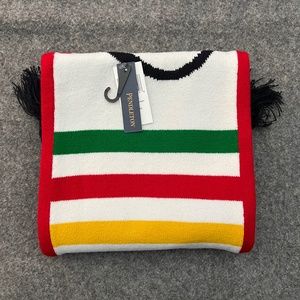 PENDLETON National Park Script Scarf. Reversible fringed scarf with multi stripes on both sides. Navy side proclaims "National Parks" in big letters with "celebrating America's treasures" beneath. Reverse side features Pendleton logo. Item comes from a smoke-free home.