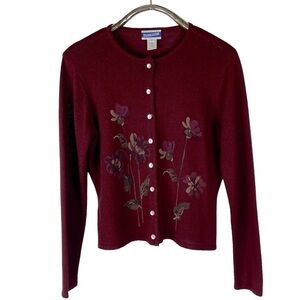PENDLETON PAINTED FLORAL BUTTON DOWN CHERRY RED CARDIGAN SWEATER