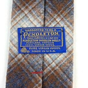 PENDLETON Plaid VINTAGE Wool Neck Tie Ivory Gray Rust Orange Short USA