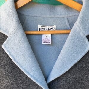 Pendleton Vintage Merino wool coat. Can be reversible. Gray on one side and baby blue on the other. There are some thinner spots as seen in the pics, but no holes.