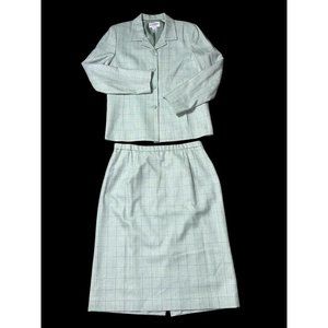 Light green and blue windowpane plaid retro blazer and skirt -- Looks like it belongs in Mad Men :) Mary Tyler Moore maybe?