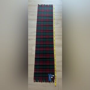 Classic checkered pattern scarf in rich burgundy and forest green. Soft wool fabric. Perfect for adding warmth and style.