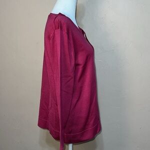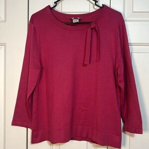 This is a beautiful, like new condition Pendleton pullover sweater. The color is a bright rose pink. This high-quality sweater is incredibly soft, smooth, and cozy with a fabric blend that's 82% silk and 18% nylon. A tie around the neckline adds elegance and class to this piece.