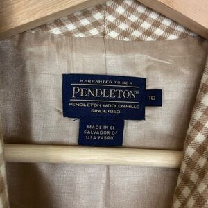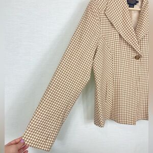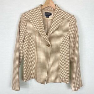 PENDLETON Tan and White Neutral Plaid Checkered Virgin Wool Boxy Blazer