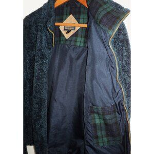 PENDLETON Teal Sherpa FLEECE JACKET Plaid WOOL Collar Pocket Full Zip Women's L