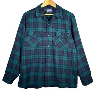 men’s size L PENDLETON Vintage Plaid Virgin Wool Flannel in forest green & black