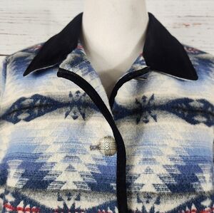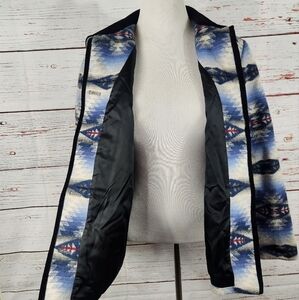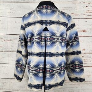 PENDLETON Vintage Wool Jacket XL, Blue Aztec Print, Suede Trim, USA Wool