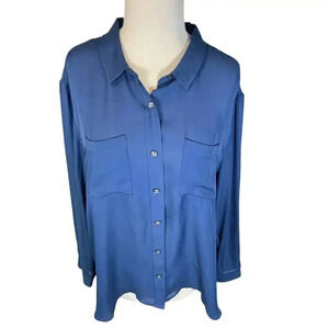 PENDLETON WOMEN'S LONG-SLEEVE SILK BUTTON-UP SHIRT NWT SIZE LARGE BLUE