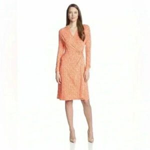 PENDLETON Women's Medium Orange Faux Wrap Print Long Sleeve Modal Cotton Knit