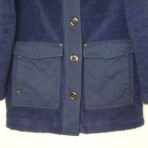 Excellent used condition!    Soft, plush Berber fleece makes this women's coat extra warm and cozy. Quilted canvas details, multiple exterior pockets and stand collar. Button front closure extends to top of neckline to keep the chill away.