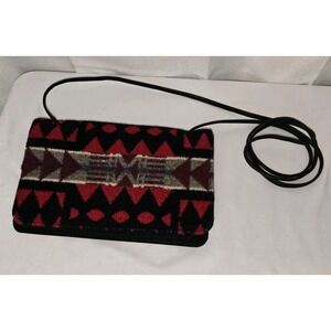 PENDLETON Wool Crossbody Bag Wallet Purse Red Aztec Southwest Print Leather