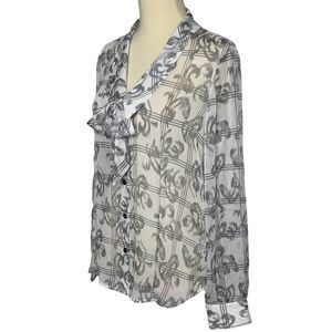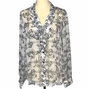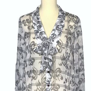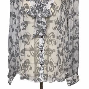 PENDLETON bow button front semi sheer gray white blouse size 8P