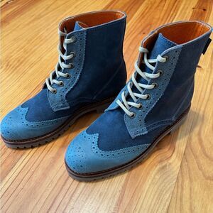 PENELOPE CHILVERS Blue Brogue Ankle Boots Leather Women’s SIZE 37.5 / US 7