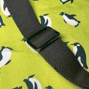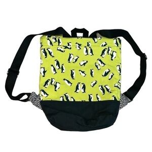 PENGUIN PRINT CANVAS BACKPACK BAG NEON YELLOW FOLD OVER TOP
