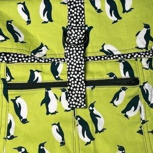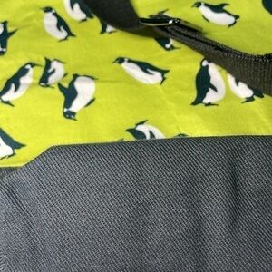 PENGUIN PRINT CANVAS BACKPACK BAG NEON YELLOW FOLD OVER TOP + ADJUSTABLE STRAPS