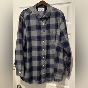 PENGUIN XXL Navy Blue White Plaid Flannel Button Down Shirt R $98